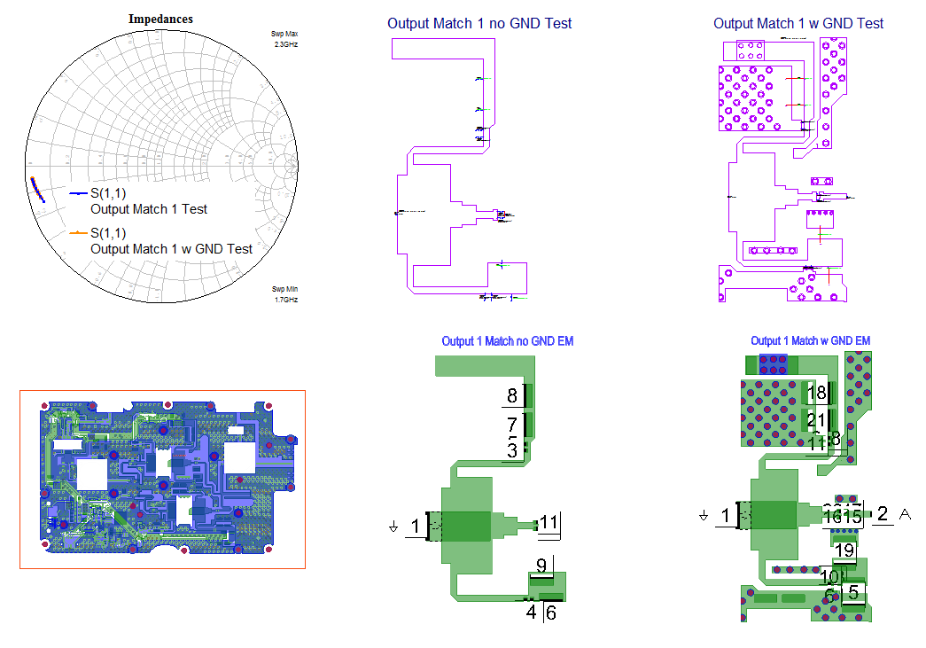 The project will open and show the imported PA board layout, an EM structure created from the imported layout, and a schematic test bench for the EM Structure.
